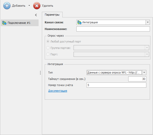 Далее вы можете производить опрос данной точки учёта через это подключение интеграции как обычной точки учёта с физическим подключением.